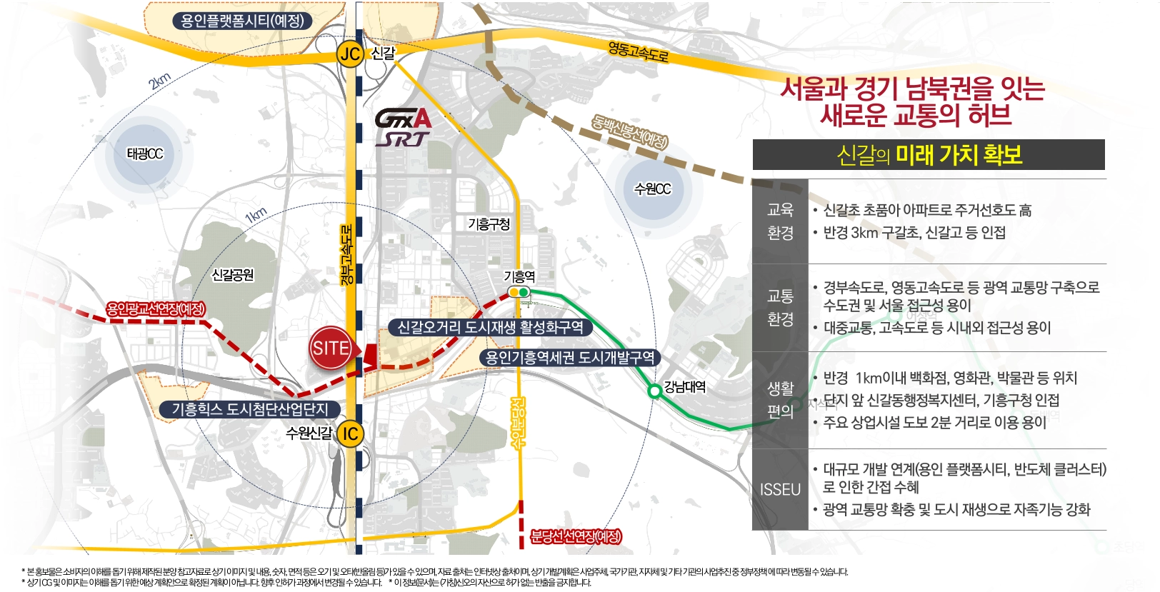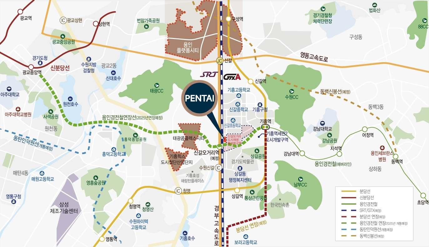 분당선, 신분당선,용인경전철,SRT,GTX-A등 교통의 중심 입지를 자랑하며, 도시첨단산업단지 등 풍성한 개발호재